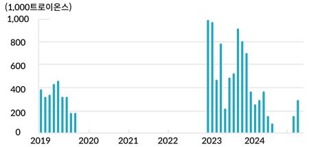 또, 금은 가치가 고정된 실물 자산으로 금리 인하기에 더욱 빛을 발하는데 각국 중앙은행의 금 매입 의지와 추후 기대되는 통화완화 환경과 맞물린다면 금은 중장기적 투자 관점에서도 매력적인 자산이 될 수 있습니다. 비록 미국 기준금리 인하 기대감이 잠시 후퇴하기는 했지만, 금은 혼란스러운 장세 속에서 여전히 수요가 넘쳐나고 있습니다. 한국거래소(KRX)에 따르면 지난 2월 5일 금거래대금은 약 1,088억 원으로, 거래소 금 시장 개장(2014년) 이후 역대 최고치라고 합니다.