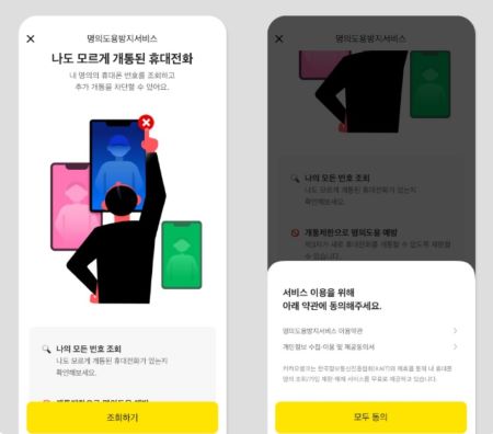 보이스피싱 사기범이 내 명의로 휴대전화를 개통할 수 없도록 도와주는 서비스입니다. 사기범이 타인의 명의를 도용해 휴대전화를 개통하는 데 이유가 있는데 휴대전화에 금융앱등을 깔아 내 자선 정보에 접근할 수 있기 때문입니다. 그리고 이렇게 접근한 이후에는 쉽게 자산을 빼앗을 수 있습니다. 카카오뱅크 명의도용방지서비스를 이용하면 다음 두 가지를 통해 이 피해를 예방할 수 있습니다.