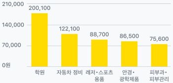 카카오페이로 소비쿠폰을 사용한 분들이 1회 평균 가장 큰 금액을 결제한 업종은 학원(20만 100원)이었습니다. 그다음으로는 자동차 정비(12만 2,100원), 레저ㆍ스포츠용품(8만 8,700원)등이 순위에 올랐습니다. 안경 및 광학제품은 업종별 소비쿠폰 전체 사용금액 6위를 차지했는데, 평균 결제금액(8만 6,500원)이 높은 편입니다.